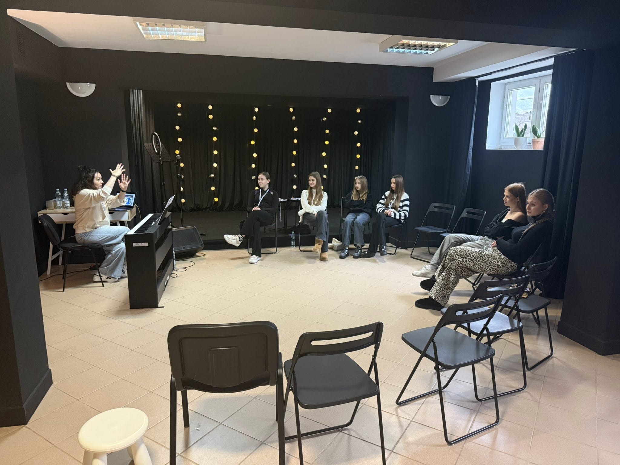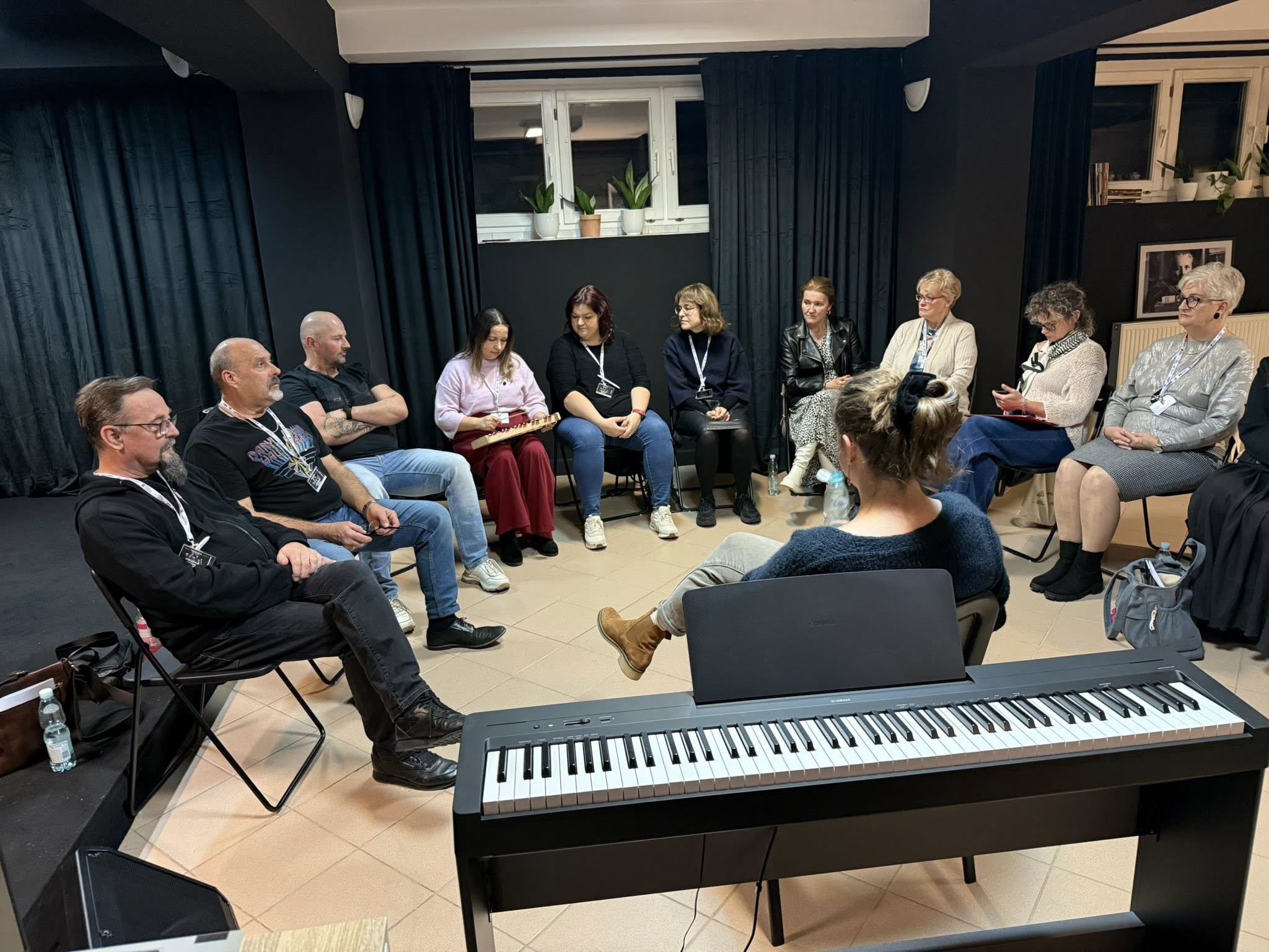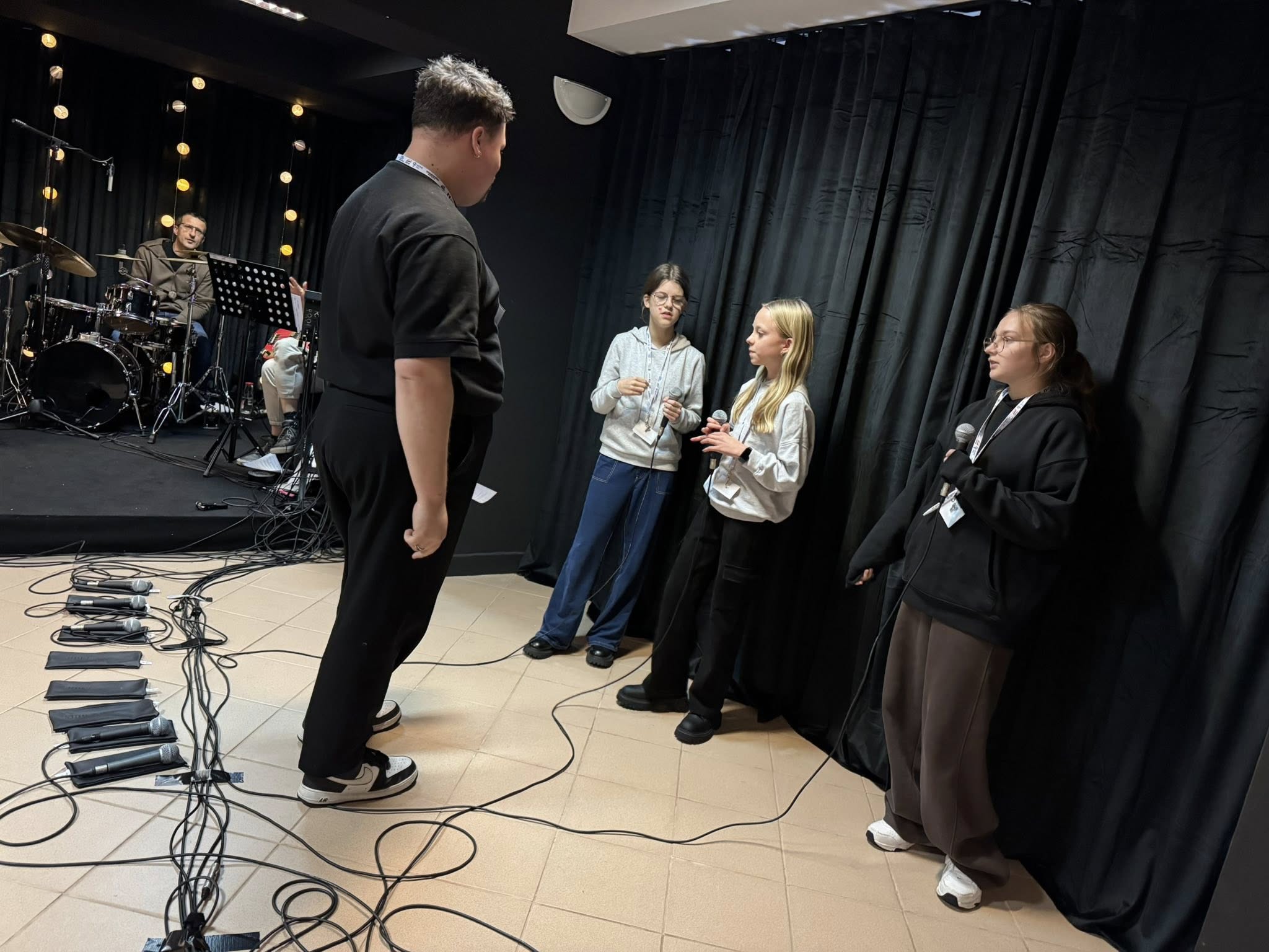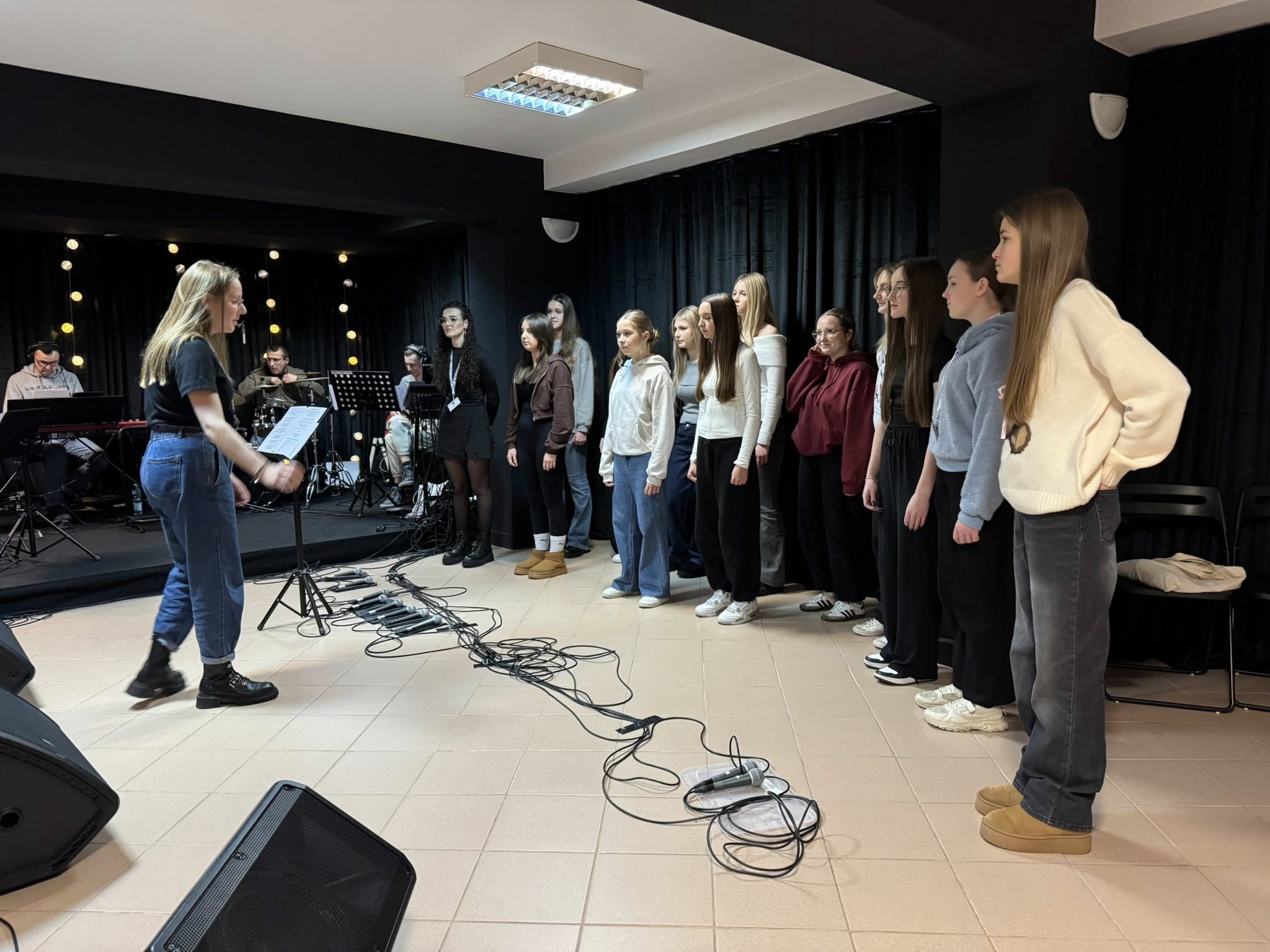 którzy pozostawili trwały ślad w historii muzyki. Zajęcia prowadzili: Anna Czuchaj-Seńko, Wiktoria Czuchaj, Elżbieta Kalinowska oraz Szymon Kuśmierczak. Pod ich kierunkiem uczestnicy rozwijali technikę wokalną, doskonaląc m.in. brzmienie samogłosek, frazowanie, styl, interpretację oraz umiejętność improwizacji bluesowej. Bogaty program obejmował również wykład z higieny głosu, zadania aktorskie i ćwiczenia relaksacyjne, wspierające mentalne przygotowanie do występu. Najbardziej wyczekiwanym momentem warsztatów była próba z zespołem muzycznym, zorganizowana trzeciego dnia. Dzięki niej uczestnicy po raz pierwszy mogli skonfrontować przygotowany materiał wokalny z brzmieniem instrumentów, poczuć energię koncertu i nauczyć się precyzyjnej współpracy z muzykami. Wspólne działania dzieci, młodzieży i dorosłych stworzyły atmosferę pełną inspiracji, zaangażowania i radości wspólnego muzykowania.