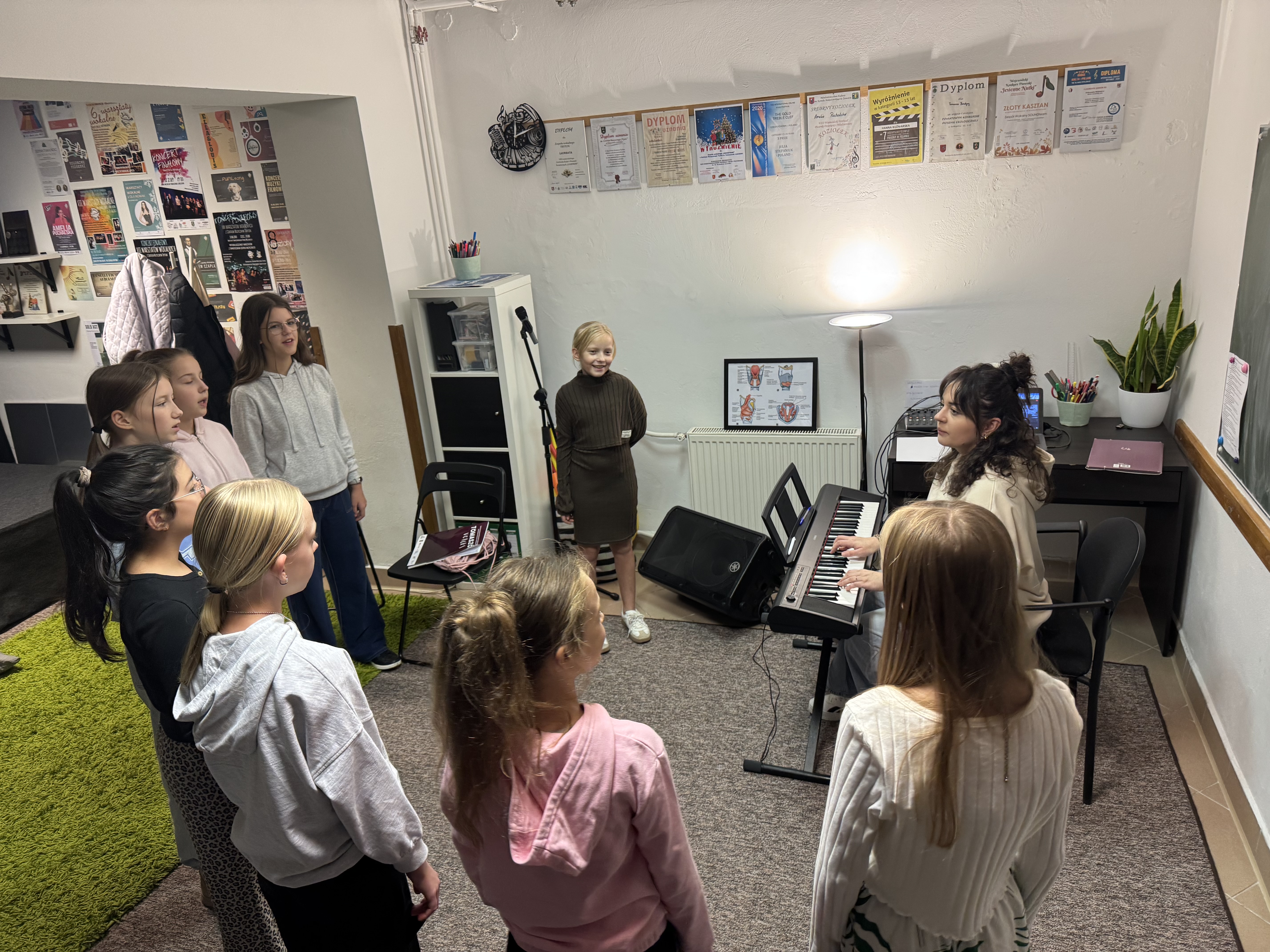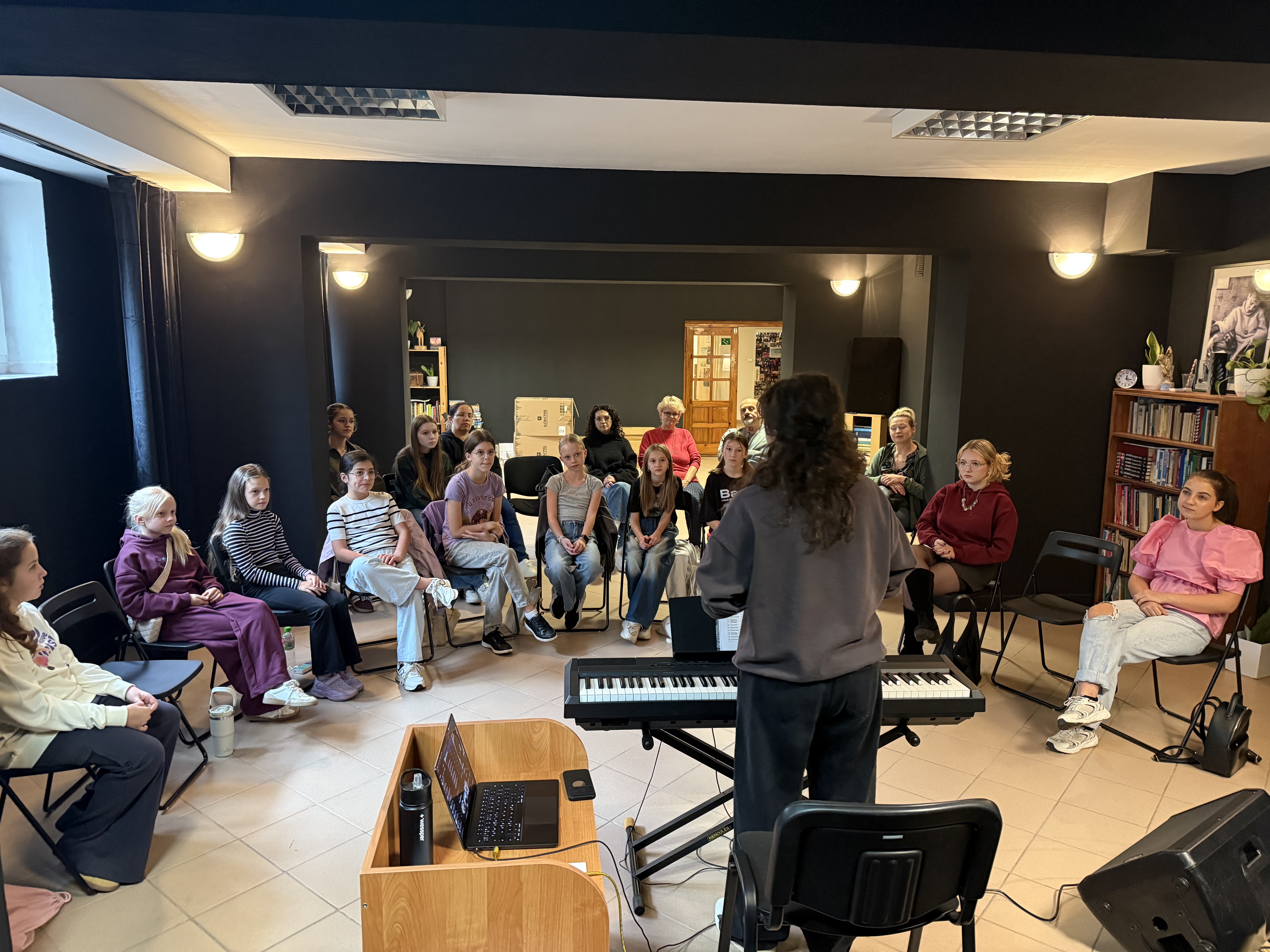 Dwudniowe zajęcia (4–5 października), obejmowały intensywną pracę nad techniką wokalną, emisją głosu, frazowaniem i interpretacją tekstu. Nie zabrakło także ćwiczeń rytmicznych, ruchowych i improwizacyjnych, które pomogły uczestnikom lepiej „poczuć muzykę” i otworzyć się na twórczą ekspresję. Dzięki inspirującej atmosferze i indywidualnemu podejściu instruktorek warsztaty stały się nie tylko formą nauki, lecz także przestrzenią artystycznego rozwoju i wzajemnego wsparcia.