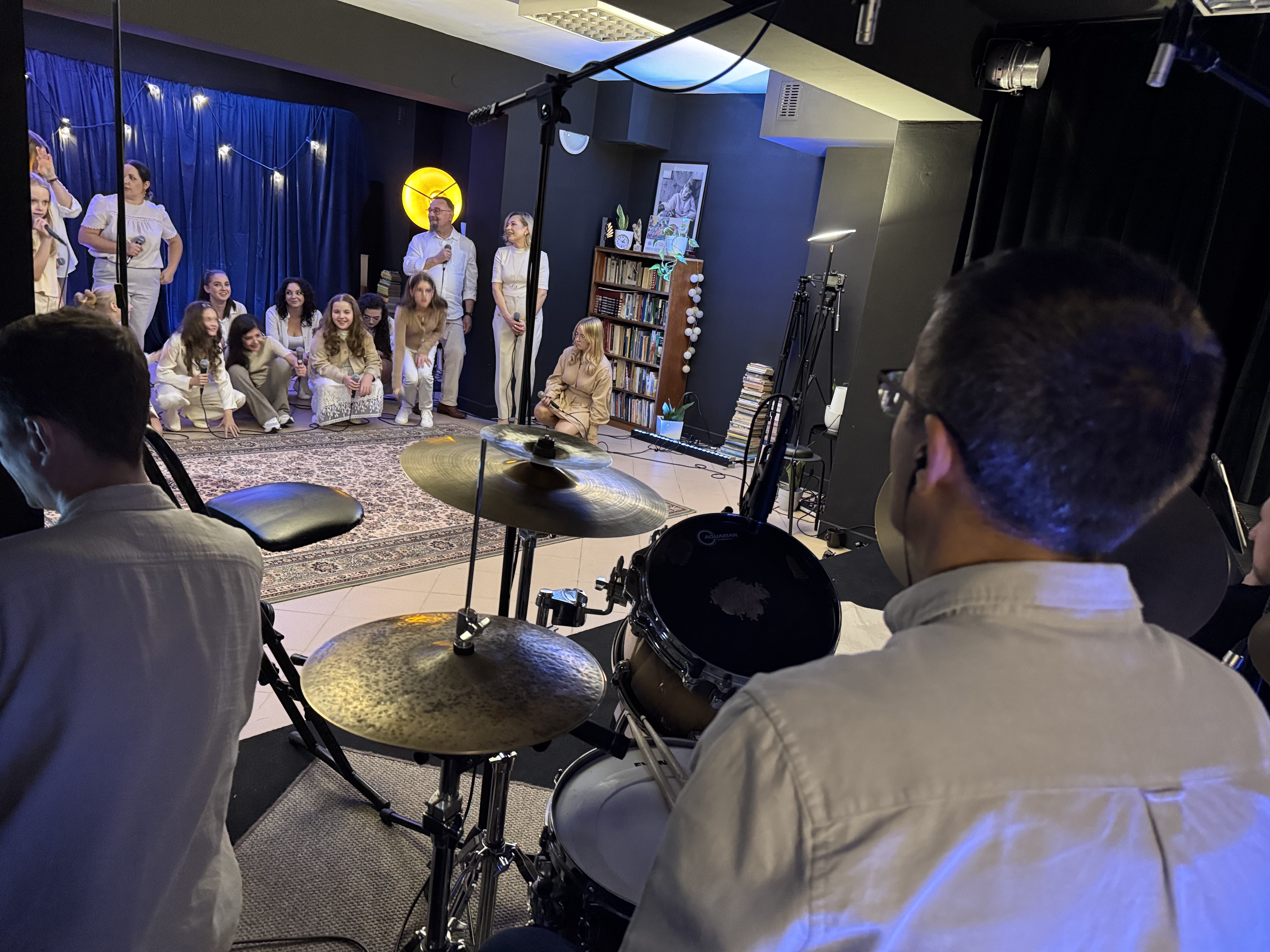 Kolejnym etapem projektu były warsztaty studyjne (11–12 października), podczas których uczestnicy mieli okazję doświadczyć pracy w profesjonalnych warunkach studia nagrań. Każdy z nich nagrał swoją partię wokalną, poznając tajniki realizacji dźwięku i pracy z mikrofonem. Drugi dzień przyniósł ekscytujące wyzwanie – nagranie klipu audiowizualnego, w którym wokaliści stanęli przed kamerą w profesjonalnych warunkach filmowych. Było to dla wielu z nich pierwsze spotkanie z planem zdjęciowym i niezapomniane przeżycie artystyczne.