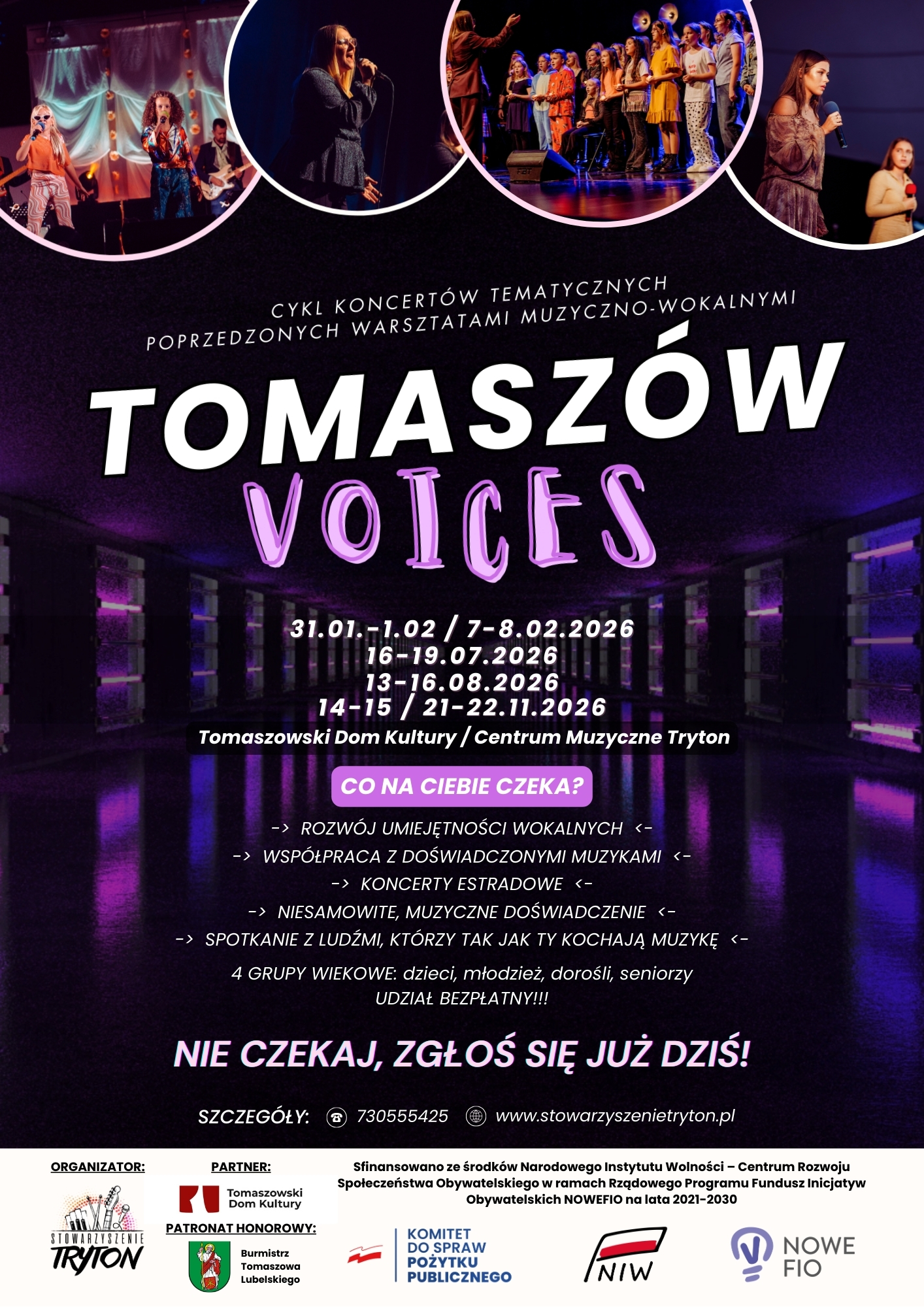 Cykl koncertów tematycznych poprzedzonych warsztatami muzyczno-wokalnymi TOMASZÓW Voices.